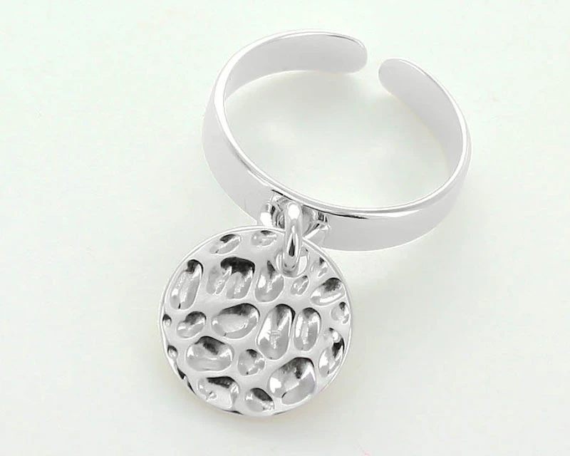 La bague est ajustable. La breloque est lisse au recto, martelée au verso. Le tour de la bague est lisse.