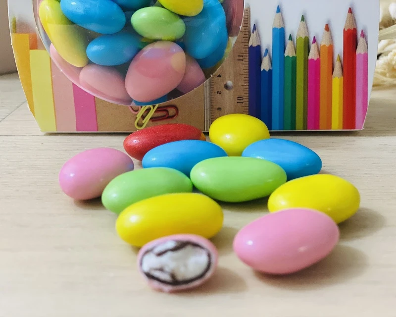 Faites plaisir à la maîtresse, au maître ou à l’ATSEM de votre enfant, en lui offrant ce gourmand petit ballotin rempli de petites guimauves enrobées de chocolat coloré et dragéifiées. Un cadeau que vous pouvez personnaliser d’un prénom ou du message de votre choix. Offrez-le pour la fin de l’année ou à la rentrée scolaire.
