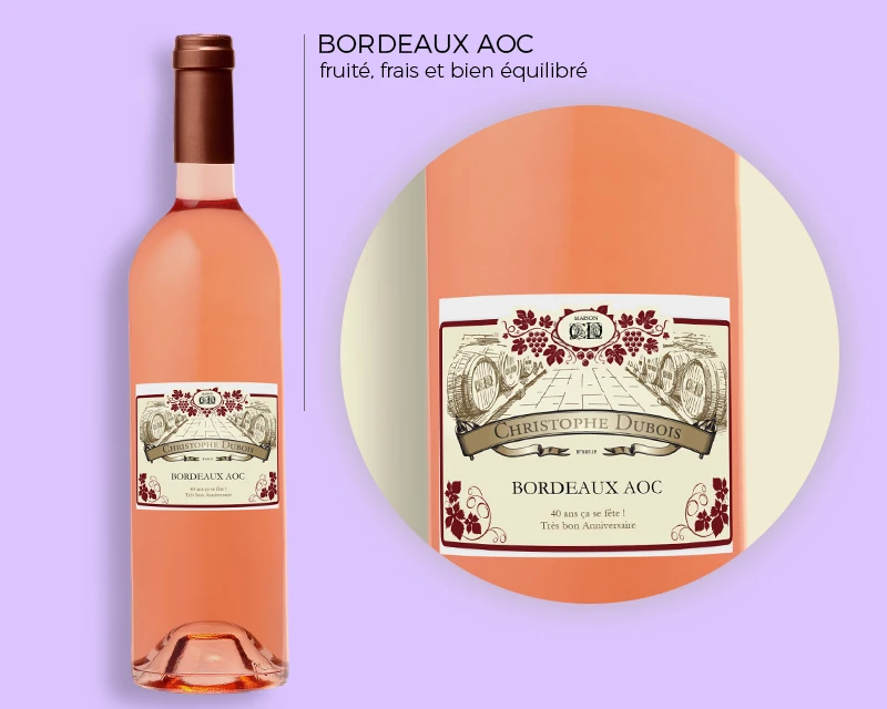 Sélectionnez votre bouteille de vin rosé avec ou sans caisse en bois. Le vin idéal qui sent la Provence avec son étiquette personnalisée pour vos fêtes et moments importants. Rendez-les encore plus uniques.