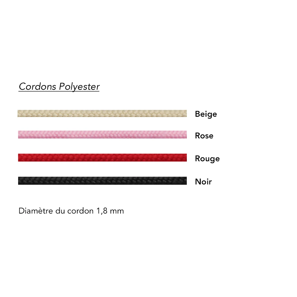 - Cordon en polyester, réglable grâce à des nœuds coulissants.