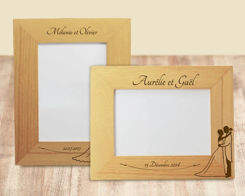 Avec ce magnifique cadre en bois, vous avez trouvé. Vous pourrez le personnaliser avec les prénoms des mariés, mais aussi la date du mariage.