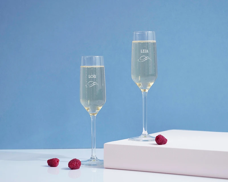 Faites graver les prénoms de votre choix sur nos flûtes à champagne personnalisées. Ces pièces gravées en verre constituent un cadeau idéal pour de multiples occasions. Commandez entre 2 et 6 flûtes personnalisées pour une fête remarquée par vos invités.