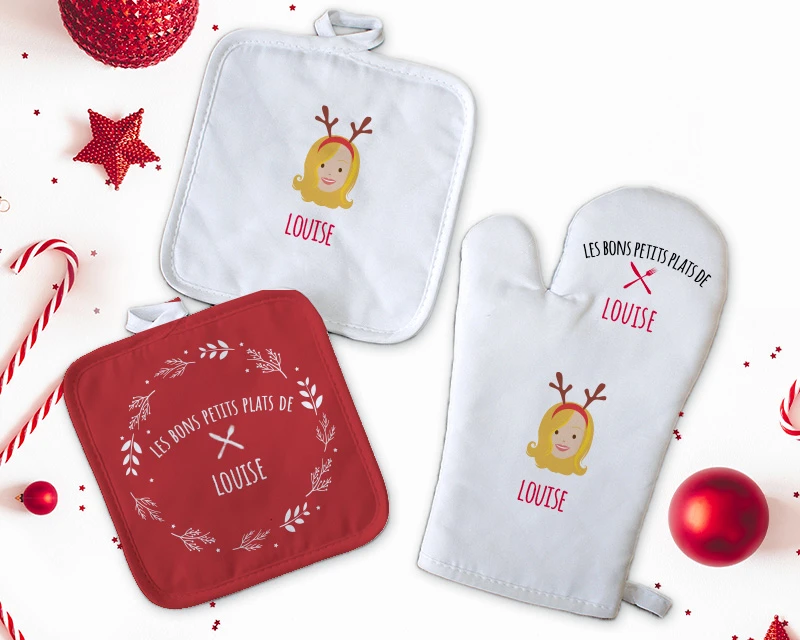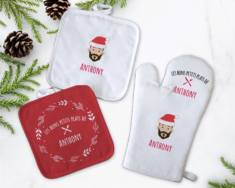 La période de Noël est sans doute la période de l’année ou l’on cuisine le plus ! Que cela soit chez vous ou en tant qu’invité, ce gant et ces maniques personnalisées aux visages de votre famille comblera de bonheur son destinataire ! Ainsi, toute la famille est en quelque sorte présente dans la cuisine, sans pour autant mettre son grain de sel dans les préparatifs… C’est aussi l’occasion de faire sortir de l’ordinaire des objets peu gracieux et pour autant indispensable dans une cuisine ! Voici une belle façon de joindre l’humour, l’esthétique et l’utile dans un même cadeau.