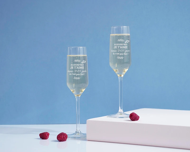 La gravure sur les flûtes peut différer légèrement des images sur le site. Nous prenons tout le soin nécessaire pour emballer les flûtes en toute sécurité pour leur transport. L’abus d’alcool est dangereux pour la santé. A consommer avec modération.