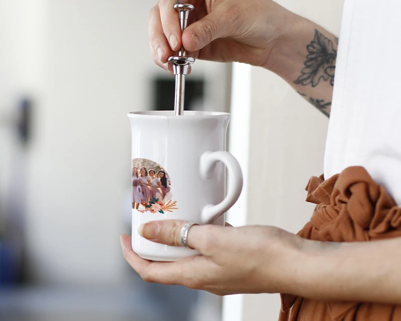 Vous pouvez personnaliser ce mug avec le nom des participantes, le nom de la mariée ou une date mémorable, ainsi qu’une photo souvenir de la bande de copines. Le mug est en céramique blanche, ce qui garantit sa solidité et sa durabilité, même après de nombreuses utilisations.