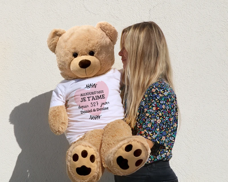 Notre ours géant personnalisable « Aujourd’hui je t’aime depuis… » en détail