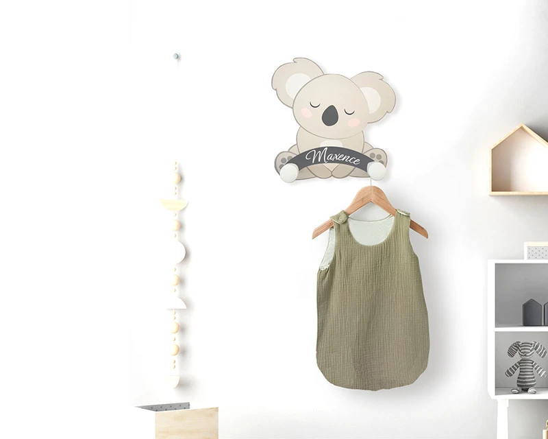 Porte-manteau personnalisé pour enfant, avec motif Animaux (renard, koala ou panda).