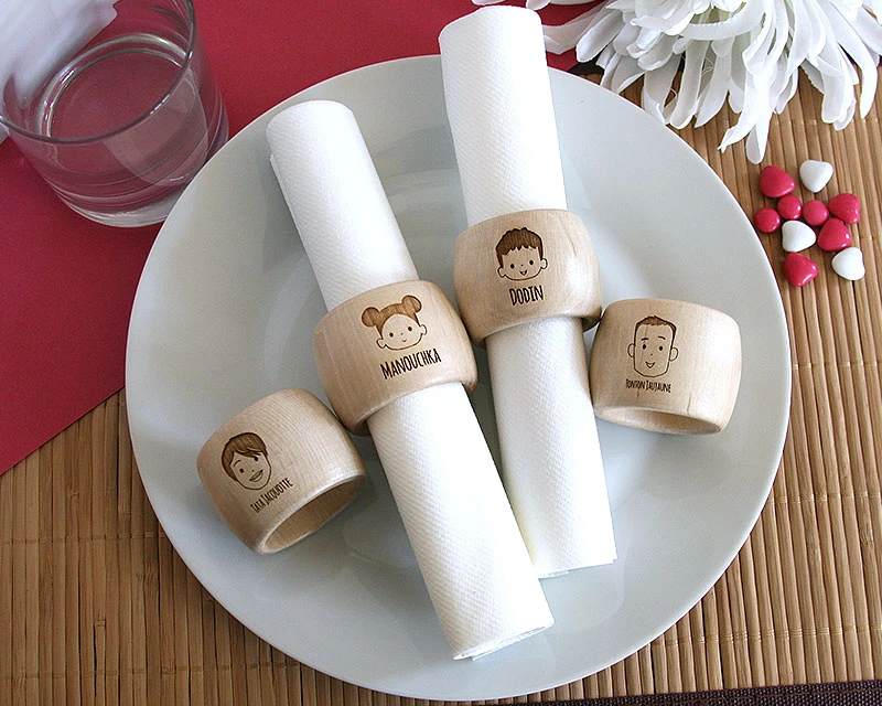 En quête d’idées de cadeaux pour Noël ? Surprenez les membres de votre famille avec ces anneaux pour serviettes marqués de leur prénom et de leur avatar. Ils apportent une touche de décoration personnalisée à votre table de fête.