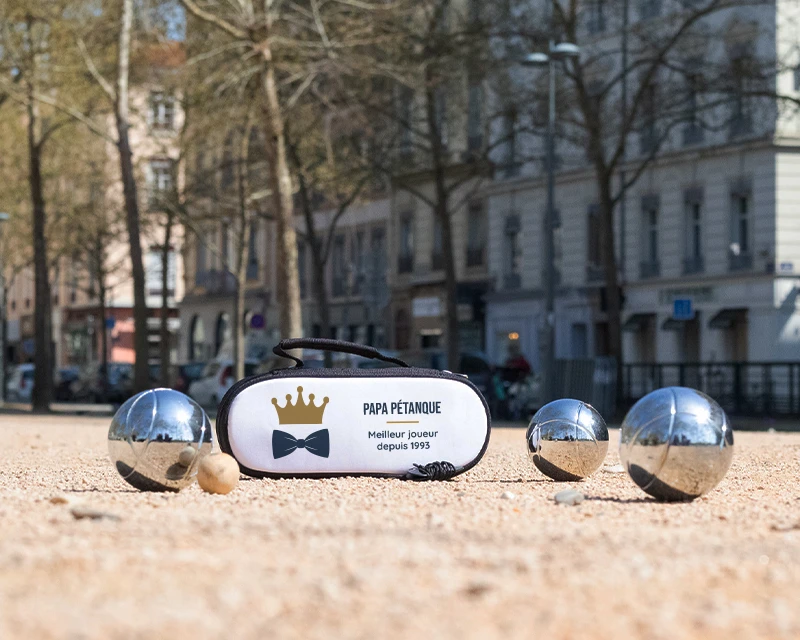 Cette pochette pour boules de pétanque personnalisée est également idéale pour fêter le départ à la retraite de votre père. De quoi créer de bons souvenirs avec des parties de pétanque entre amis ou en famille.