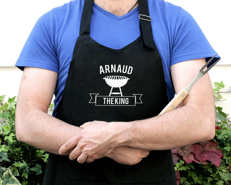 Sacrez votre ami, votre papa ou votre tante comme Maître du grill ou Reine du BBQ avec ce magnifique tablier brodé Barbecue. Un véritable tablier de Chef à personnaliser avec son prénom et un court message, que votre proche sera fier d’arborer dès l’arrivée des beaux jours.