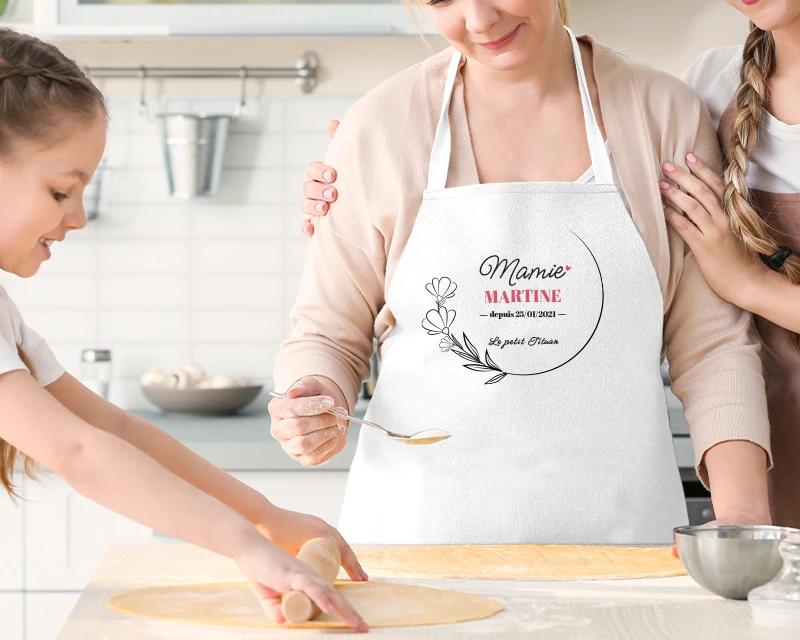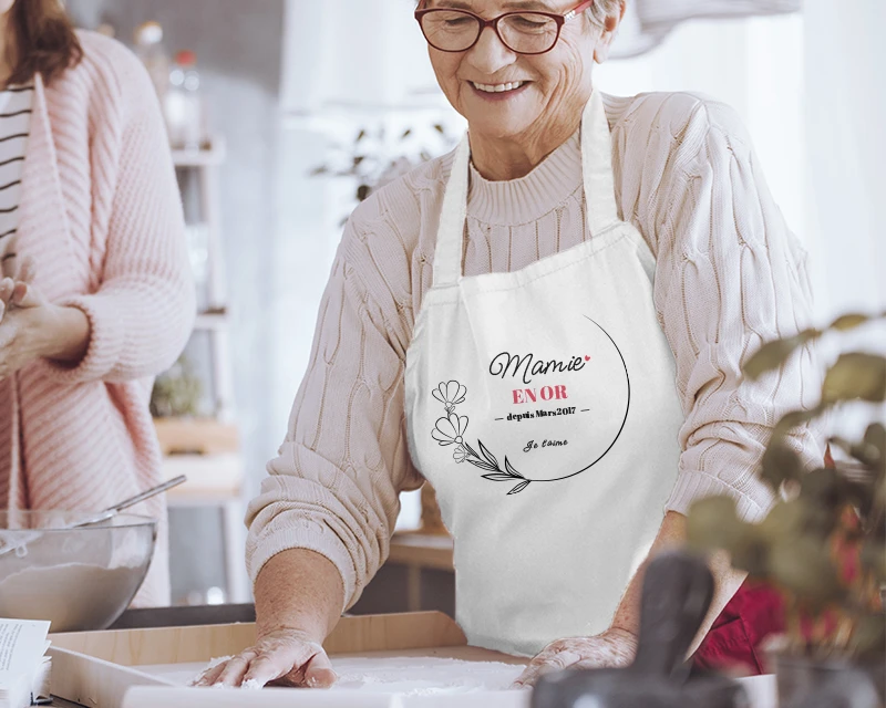 Ce tablier de grand-mère personnalisable fera fondre le cœur tendre de votre mamie, avec son illustration florale délicate et votre personnalisation élogieuse. Ajustable, il ira parfaitement aux mamies de toutes morphologies.
